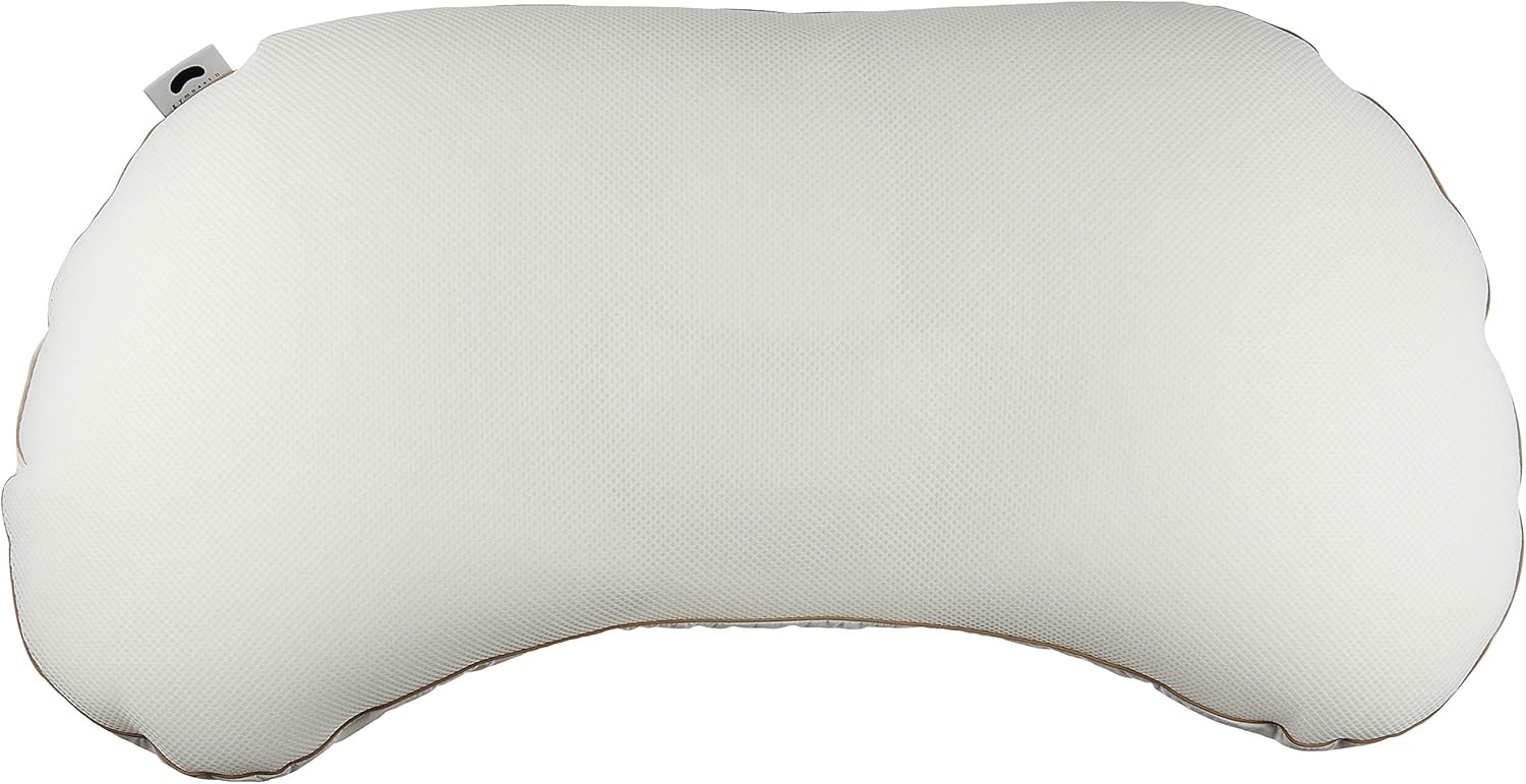 枕本体は弧を描くような形状になっており、内部は約4種類の素材が使われています。さらに、首、耳、後頭部、そして外側の柔らかさが異なる仕様。仰向けから横向きになるときも、またその逆もスムーズに行えるのが大きな特徴です。