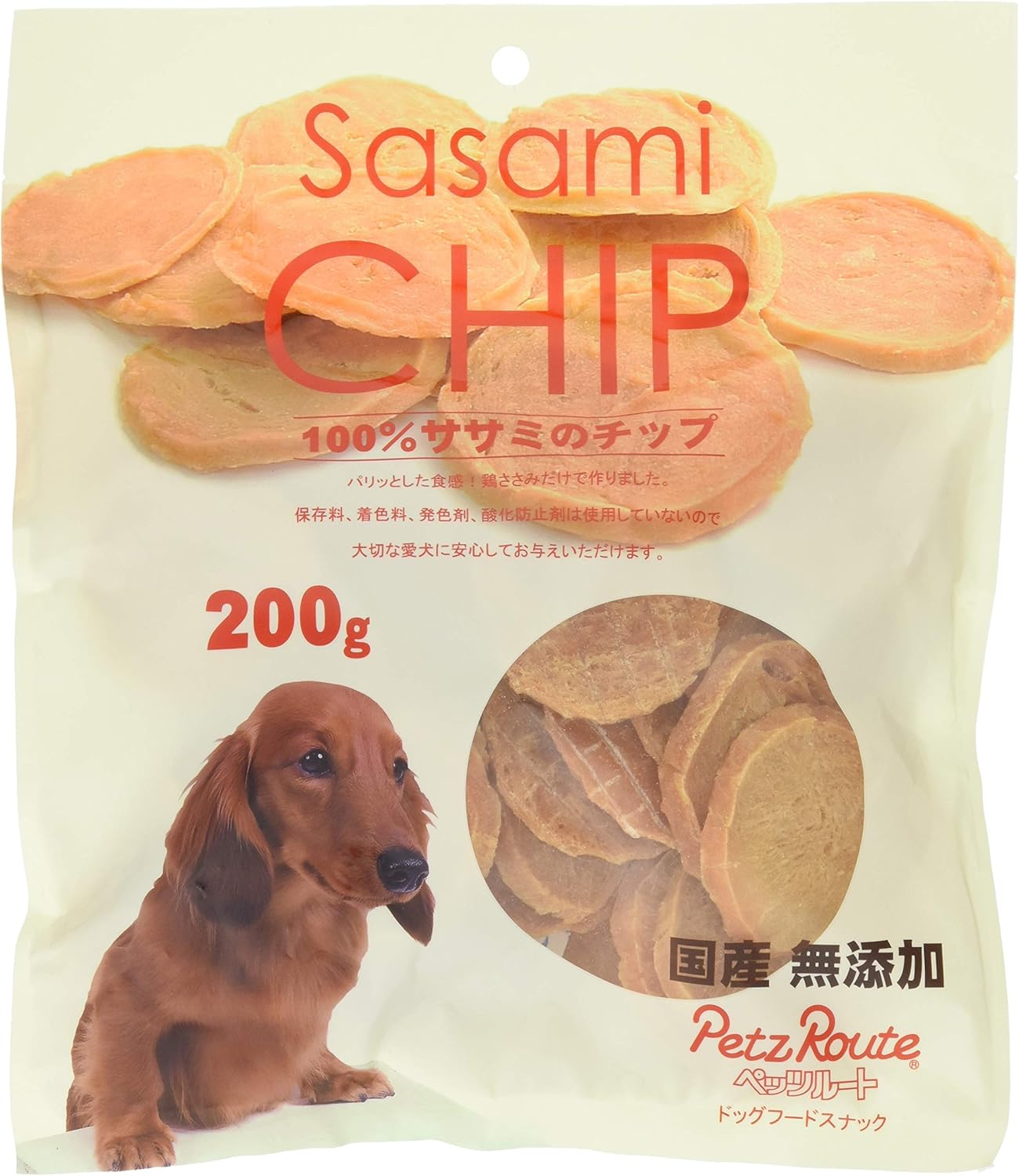 ペッツルートの「ササミのチップ」は、100%鶏ささみだけで作った無添加のおやつです。