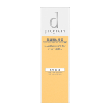 続いて紹介する30〜40代におすすめの大人ニキビスキンケアは、資生堂発ブランド「dプログラム」の「アクネケア エマルジョン」4,070 円(税込)です。ずっとニキビが気になっていた方だけでなく、季節の変わり目でスキンケアを見直したい方にもおすすめ。