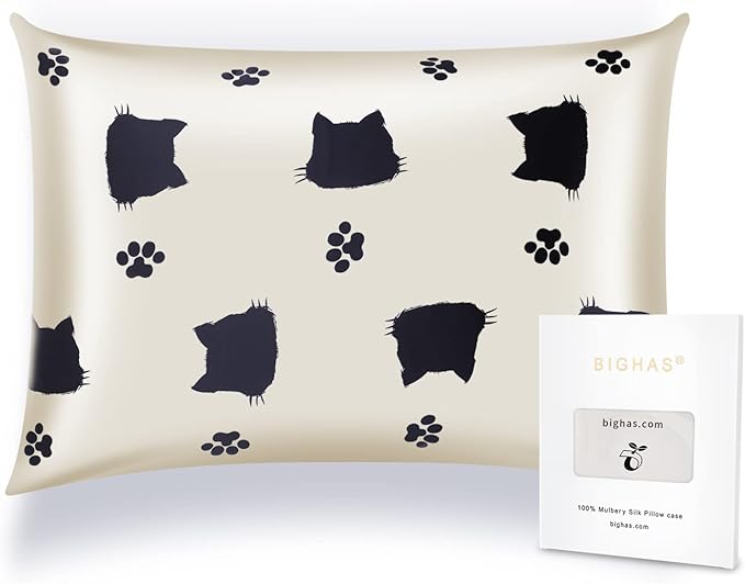 BIGHAS シルク枕カバーは、猫や犬をあしらったかわいらしい柄のラインアップを展開しているのが特徴の枕カバー!