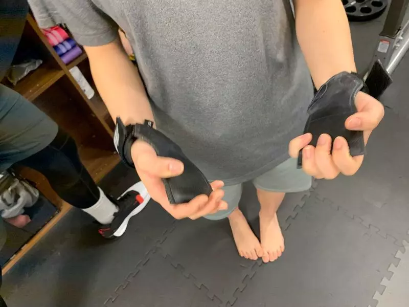 グローブのような形をしたこちらは「パワーグリップ」といって、トレーニング器具を持つ手をサポートしてくれる便利グッズなのだとか!