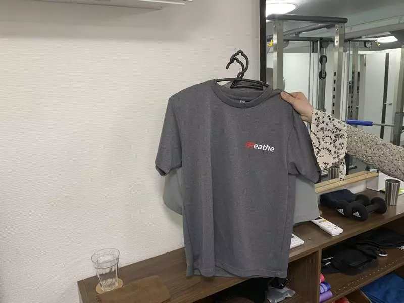 部屋にかかっているウェアは、「パーソナルトレーニングジムBReathe」で用意してくださったもの。