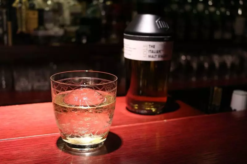 美しい氷の上に注がれたのは、イタリア産のウィスキー"プーニ"。