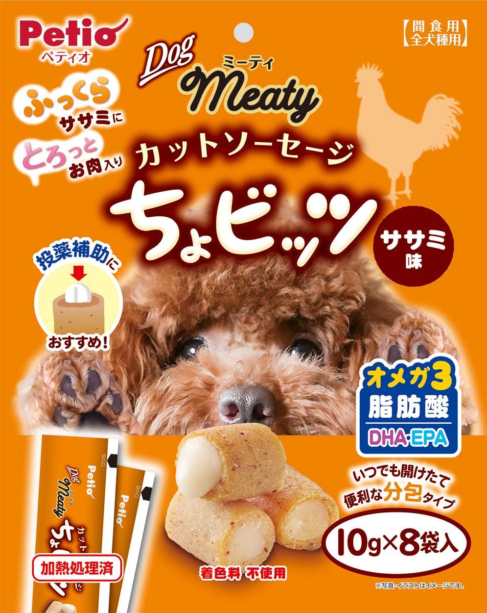 「Meaty カットソーセージ ちょビッツ」は、1袋10gに分包されています。与える量を管理しやすいだけでなく、いつも開けたての美味しい状態であげられるのが嬉しいポイントです。
