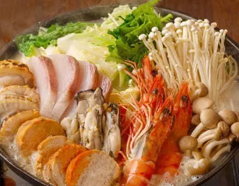 新鮮な魚介類とクリーミーなあん肝が特徴の味噌ベース鍋です。