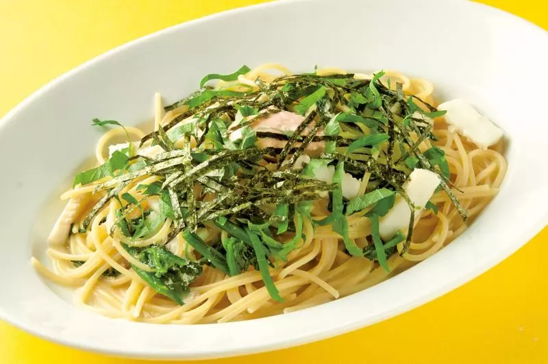たらこ、イカ、ほうれん草など具だくさんのパスタを、大葉の香りがさっぱりとまとめます。