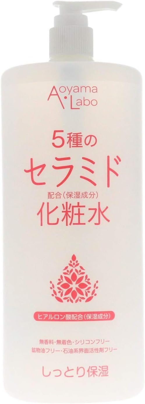 続いてご紹介するおすすめのセラミド化粧水は「Aoyama・Labo」の「5種のセラミド化粧水」1,033円(税込)です。商品名の通り、なんと5種類ものヒト型セラミド(セラミドNG、AP、AG、NP、EOP)を配合しています。(※"Aoyama・Labo"公式Amazonサイト 参照)