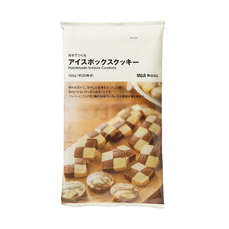ここからは、毎年バレンタインの時期になると登場する「無印良品」の手作りキットをご紹介します。「アイスボックスクッキー」は、混ぜ合わせた材料を冷やし、カットしてから焼くだけの簡単クッキーです。