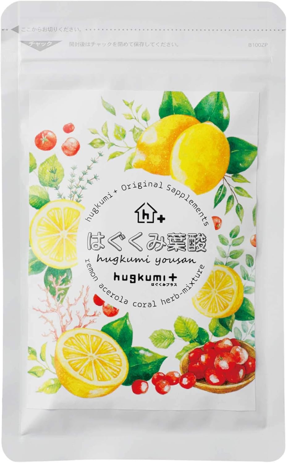最後に紹介するおすすめの産後サプリは「はぐくみプラス」の「はぐくみ葉酸」90粒入り3,980円(税込)(Amazon価格)です。有機レモンから搾った貴重な葉酸が配合されているほか、鉄分やビタミン、さらに22種類の野菜なども配合。(※"はぐくみプラス 公式HP"参照)
