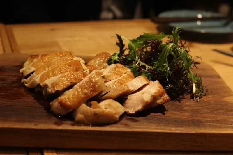ハーブやブラックペッパーなどを加えた自家製塩レモン(乳酸発酵)のタレに漬け込んだ鶏肉は、旨味が染み渡った逸品♡