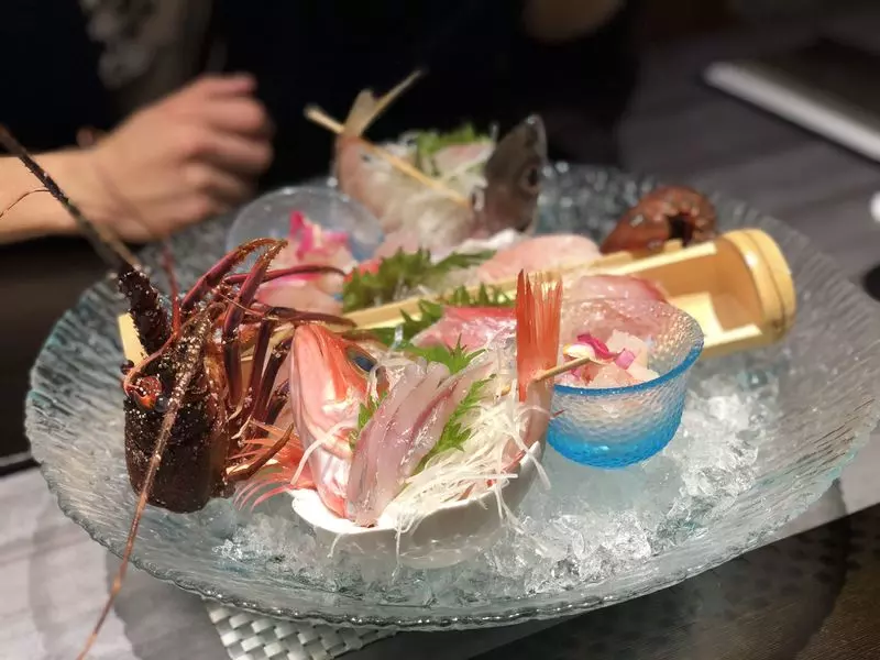 駿河湾に面する伊豆では様々な新鮮な魚介が獲れるので、お刺身も豪華です。また海老は伊勢海老で、大きく身が詰まりプリプリの食感です。