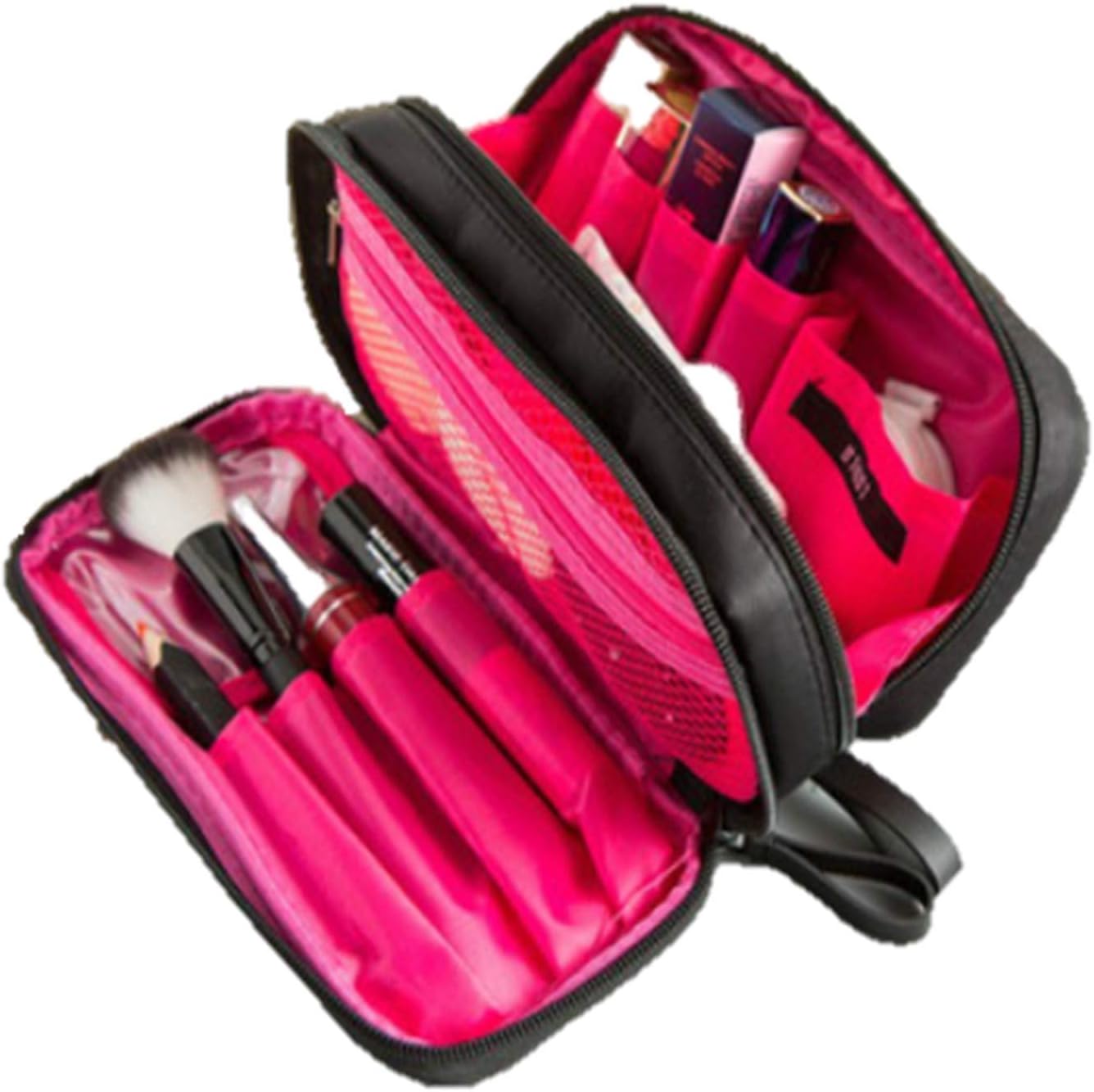 2層構造で各アイテムをきちんと分けて収納できるところがポイント。整頓が苦手な方でもこのタイプならばポーチの中をきれいに保てることも期待できます。黒のみのシンプルな外見ですが、ファスナーを開けると鮮やかなピンクが広がるギャップのあるデザインも魅力です。
