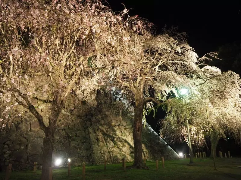 城壁の外の枝垂桜も見どころのひとつ。こちらは無料で観覧可能です◎