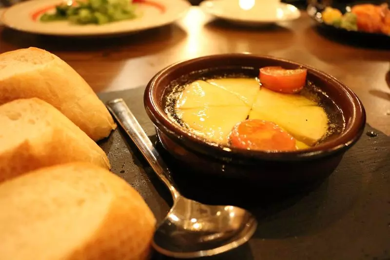 ニンニクの旨味が染み出したオリーブオイルをパンにたっぷり染み込ませ、その上にチーズをON。