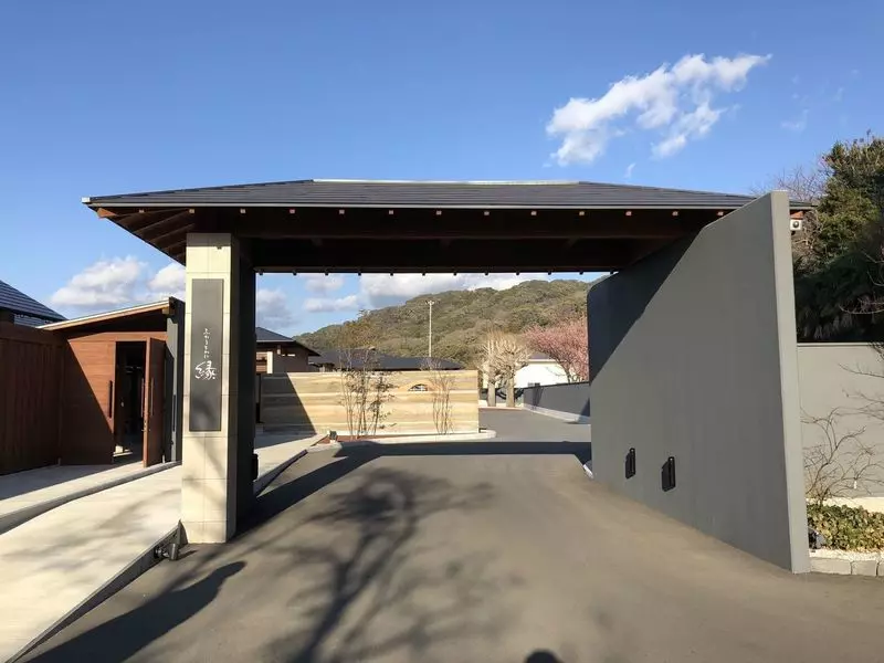 ここからは、「ふたりとわに 縁」に実際に宿泊したアウモ調査員の体験をもとにした宿泊記をお届け。口コミも添えながら、実際に訪れないとわからない肌感覚の情報をお伝えしていきます!こちらのお宿には、東名高速の沼津ICから車で75分ほどの所にあります。