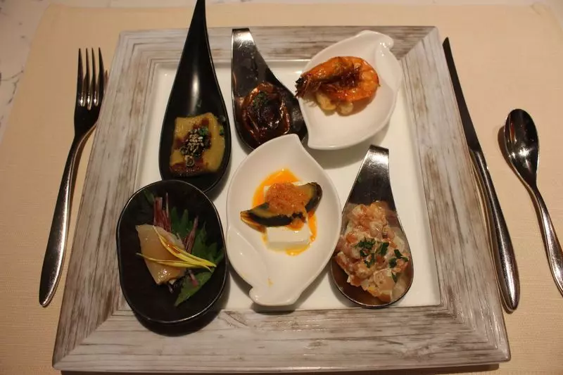 一口サイズのものが6種類ものっていて目も舌も楽しいです。