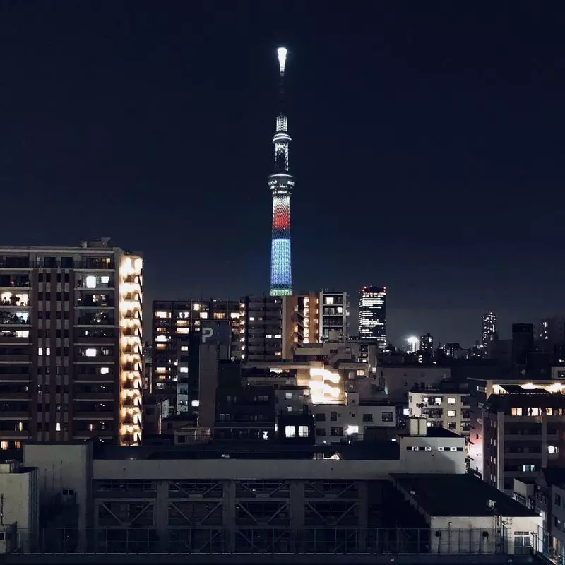 夜になると美しく色づく、東京スカイツリー。ああ、東京にいるんだなあと思う瞬間。