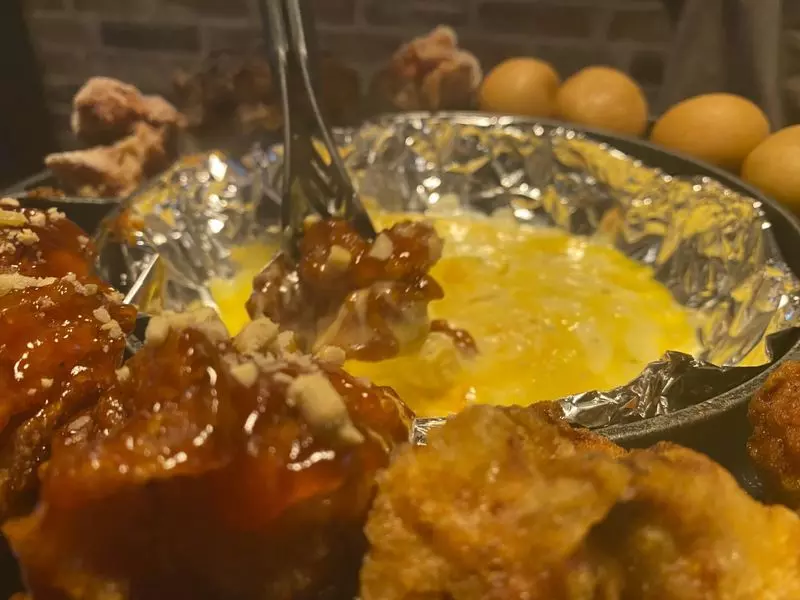 「UFOチキンフォンデュ」の中に入っているチキンは、