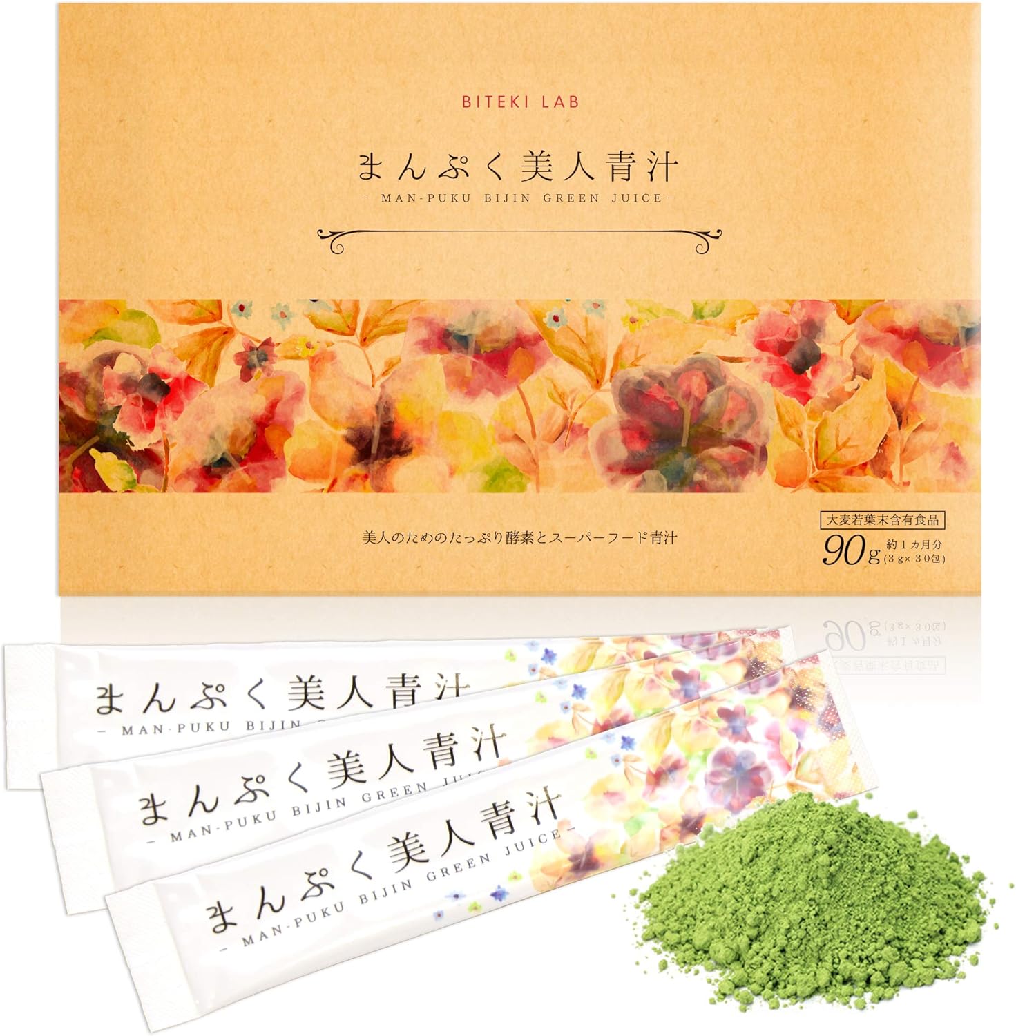 続いてご紹介する置き換えダイエットにおすすめの青汁は、美的ラボの「まんぷく美人青汁」です。1杯6.95kcalと低カロリーなのが嬉しいポイント。水分を含むと膨らむこんにゃくマンナン※1が含まれており、満腹感を得やすい青汁です。