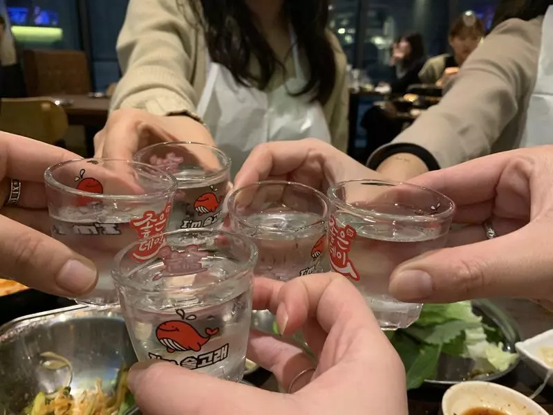 乾杯ドリンクに選んだのは、韓国の焼酎"ジョウンデー"。