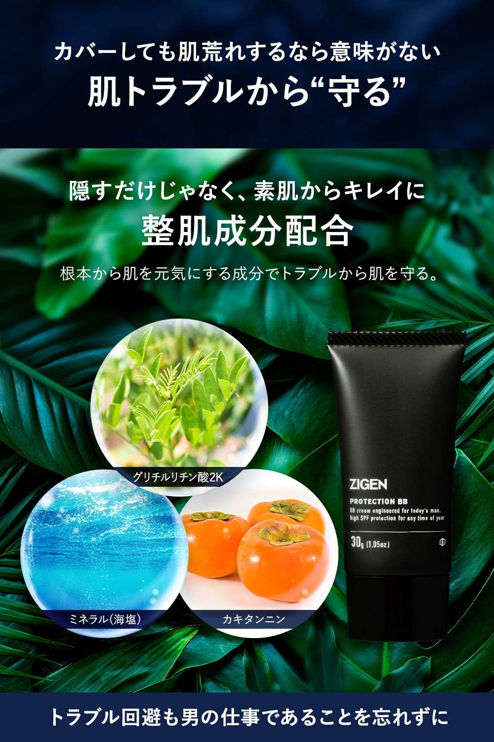続いてご紹介するおすすめのメンズファンデーションは、ZIGEN「プロテクションBBクリーム」。肌トラブルを自然にカバーしてくれるのが特徴のメンズファンデーションです。
