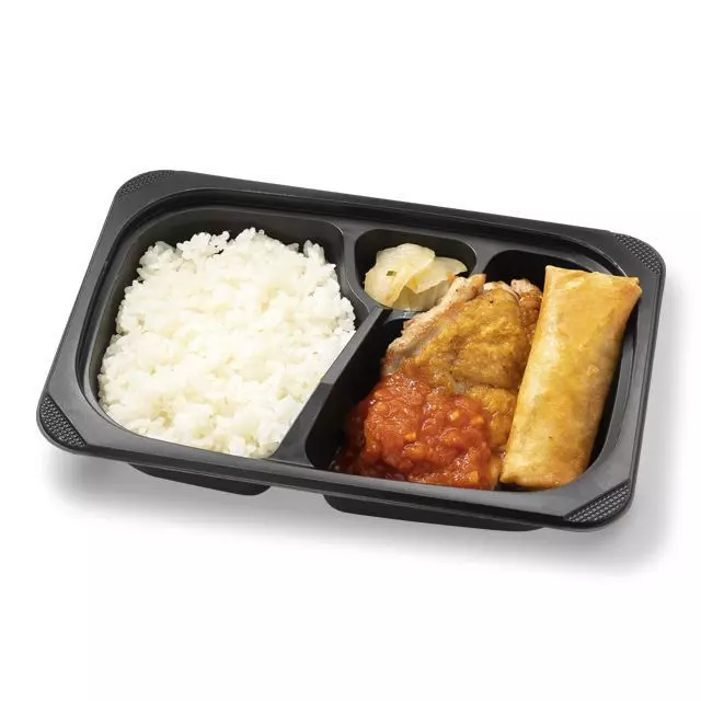 ガストのテイクアウトメニュー「チキンガーリック&春巻き弁当」550円(税込)。若鶏のグリルと春巻きが一緒になったお弁当です。