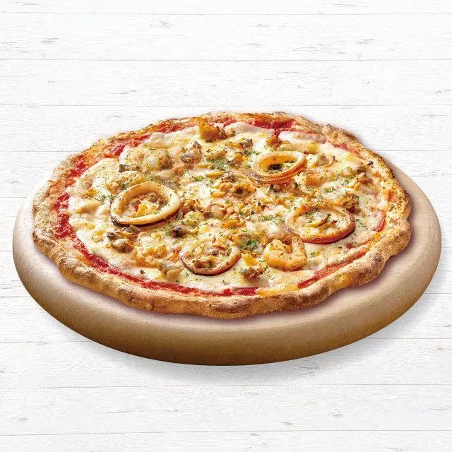 ガストの人気テイクアウトメニューは「魚介たっぷりシーフードピザ」950円(税込)。ナポリ風ピザ生地になっており、外はサクッと中はもちっとした食感です。