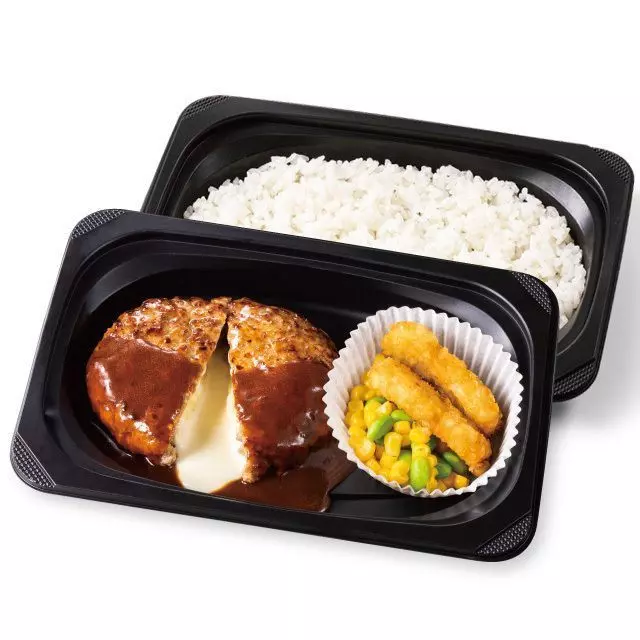 ガストの人気テイクアウトメニューは「チーズINハンバーグ弁当」900円(税込)。ガストといえば、やっぱりチーズインハンバーグ!ジューシーなハンバーグの割れ目から溢れ出る濃厚なチーズがたまりません。サクサクのハッシュドポテトがついているのもうれしいポイントです。