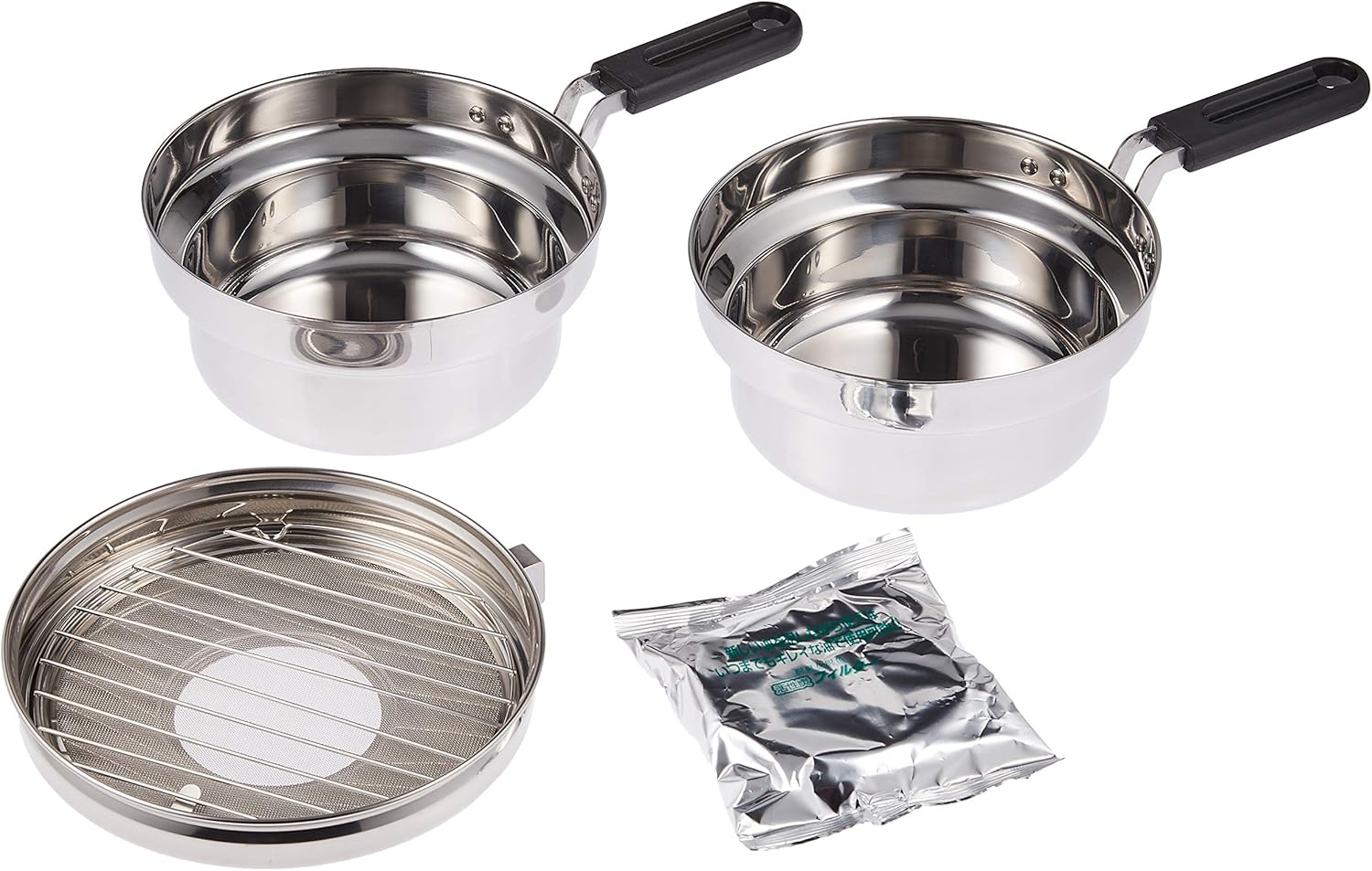 続いてご紹介するおすすめのオイルポットは、山谷産業「活性炭フィルター付 らく揚げポット」。鍋型のオイルポットでガス・IHともに利用できるのが嬉しいポイントです。下の鍋ではろ過した油をそのまま揚げ物鍋として利用することができ、上の鍋は油きりとして利用することができます。