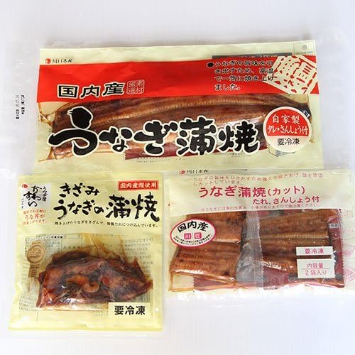 川口水産 国産うなぎ かば焼き たれ・山椒付き 3種組み合わせセット 約300g (通常梱包箱)