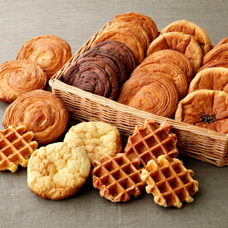 "小倉・デニッシュ・メロンパン・ワッフル"がセットになった商品で、定番のパンを頂けます。