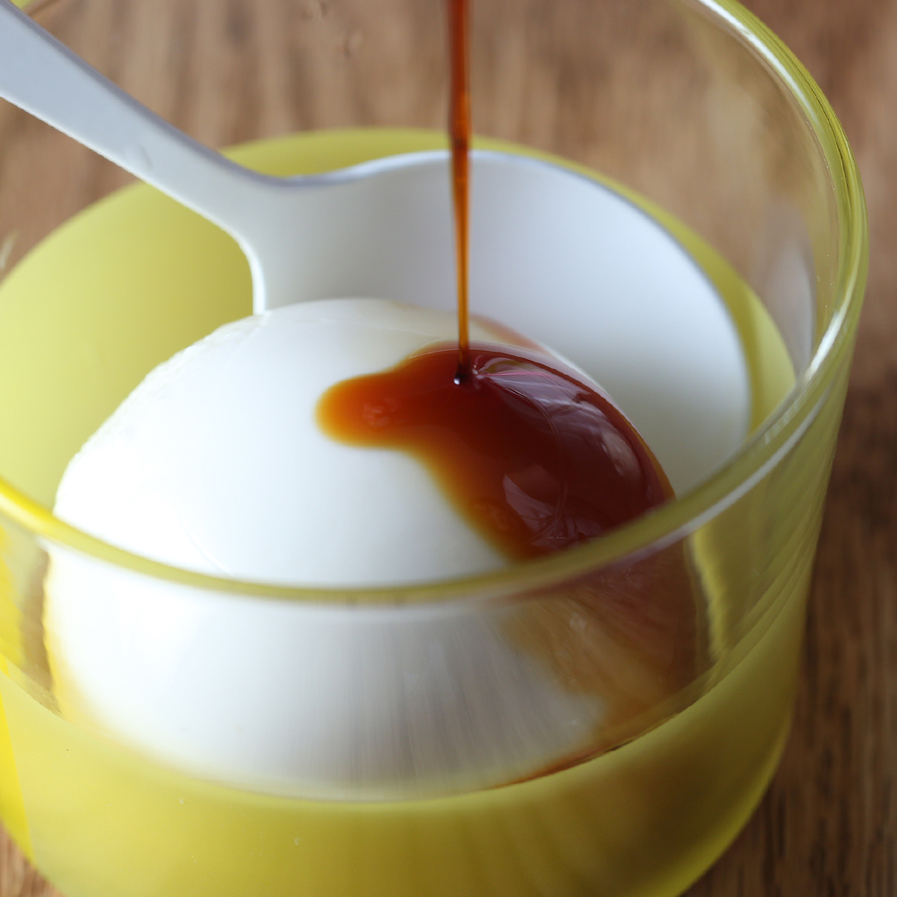 また、プリンにかけるカラメルは別容器で付属。オーガニックシュガーから作られた香ばしいカラメルの香りを損なわないよう、プリンを食べる直前にかけるのがおすすめです。