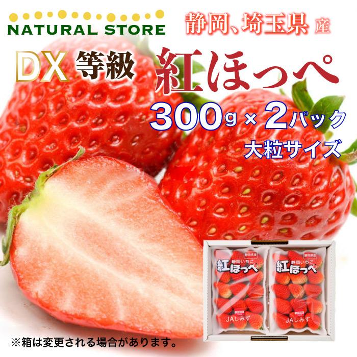 【要冷蔵】紅ほっぺ 2パック化粧箱 大粒サイズ DX 約300g×2パック 静岡県産 埼玉県産 苺 いちご イチゴ べにほっぺ 美味しい