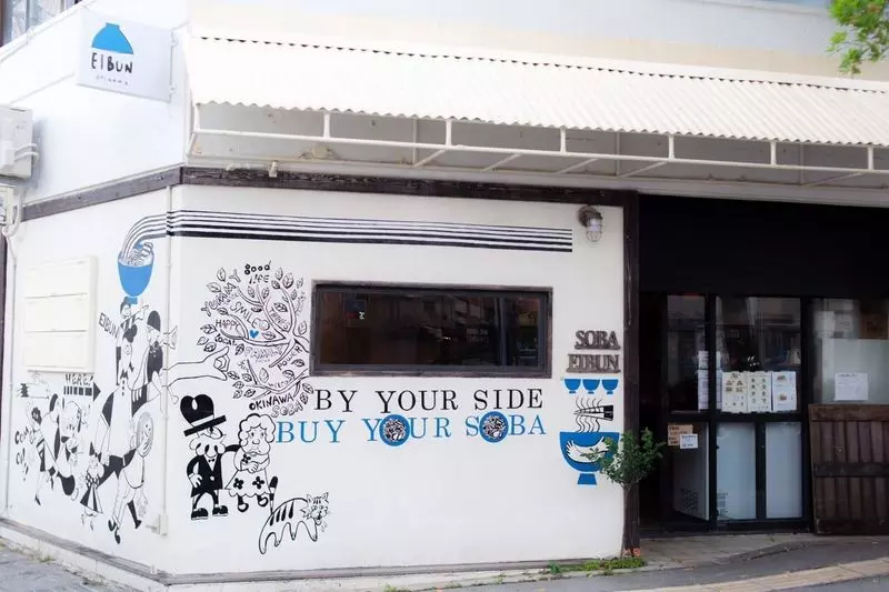 そんな「OKINAWA SOBA EIBUN(エイブン)」は、牧志駅から歩いて約10分で「やちむん通り」のすぐそば。決して駅近とは言えませんが、それでも毎日多くのお客さんで賑わっています♪