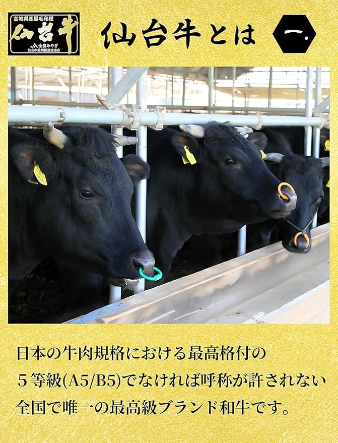 - 仙台牛…脂肪と赤身のバランスが良く、まろやかな風味