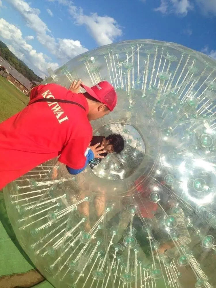 この大きな透明の球体に固定され敷地を思い切り、ゴロゴロと転がって行くスリルは怖さを通りすぎて、思わず爆笑してしまいます(笑)