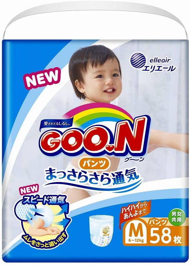- 2. まっさらさらシートで通気性ばっちりの紙おむつ「大王製紙 | グ〜ン パンツ まっさらさら通気Mサイズ58枚」