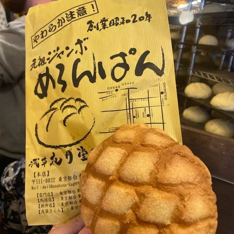 浅草花月堂といえば、中ふんわり外カリカリの「ジャンボめろんぱん」300円(税込)です。人気店であるため行列をつくっていることもありますが、完売次第販売終了となってしまうので、ジャンボめろんぱんが食べたいときは、早めに並ぶのがおすすめ。