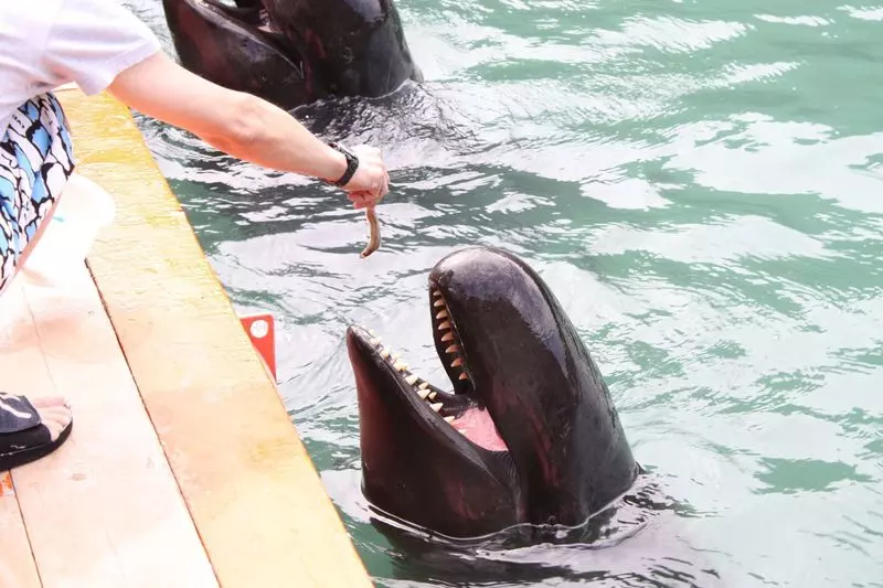 海と山が広がる大自然を背景に、くじらのパフォーマンスを見たり、その生態について学んだりすることのできる施設です!