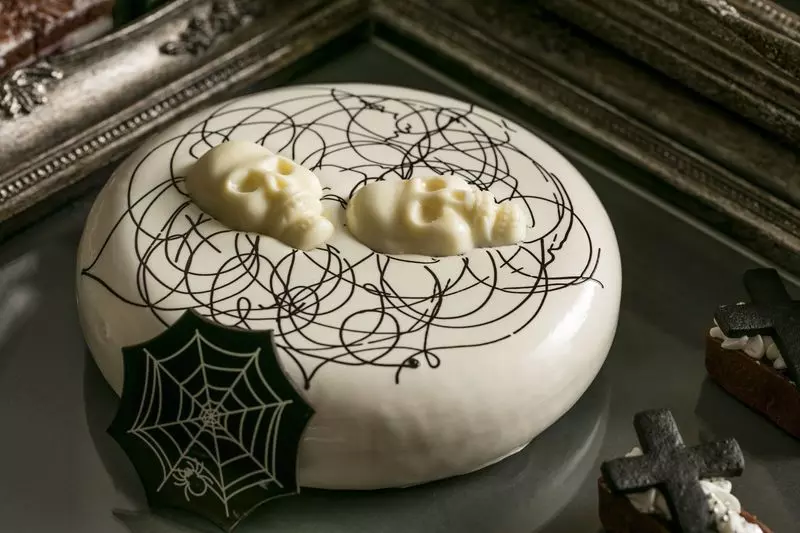 約35種類の細部までこだわって作られた、怖いけどどこか可愛らしいデザートと、白と黒を基調として作り上げられたシックな空間が私たちを異世界へと誘ってくれます。
