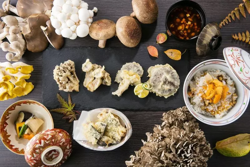 秋鮭や、秋刀魚の大葉揚げなどの旬の魚や、茸の天ぷらが日替わりで楽しめるコース。