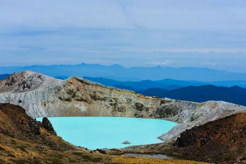 この活火山の特徴は写真の通り、湖水が鮮やかな青色をしていて、その景色はまさに幻想的です。