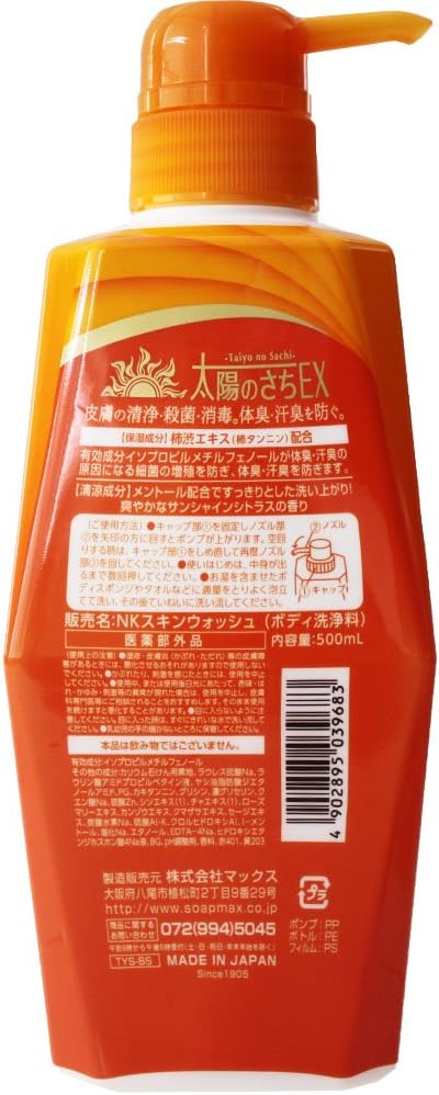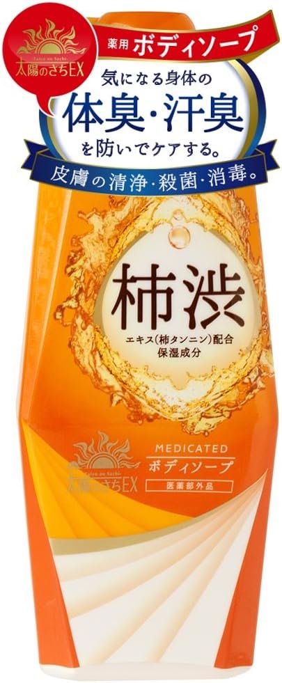 続いてご紹介する加齢臭対策におすすめのボディソープは、柿のさちの「薬用太陽のさちEX柿渋ボディソープ」。こちらはドラッグストアでも購入できる、男女兼用にもおすすめなボディソープです。