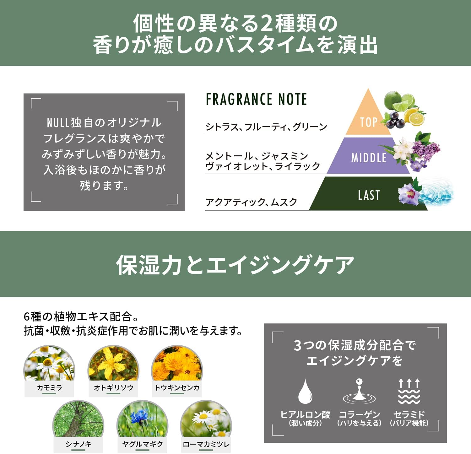 続いてご紹介する加齢臭対策におすすめのボディソープは、NULLの「薬用フレグランスボディウォッシュ」。こちらはマリンシトラスの香りのメンズ向けボディソープです。
