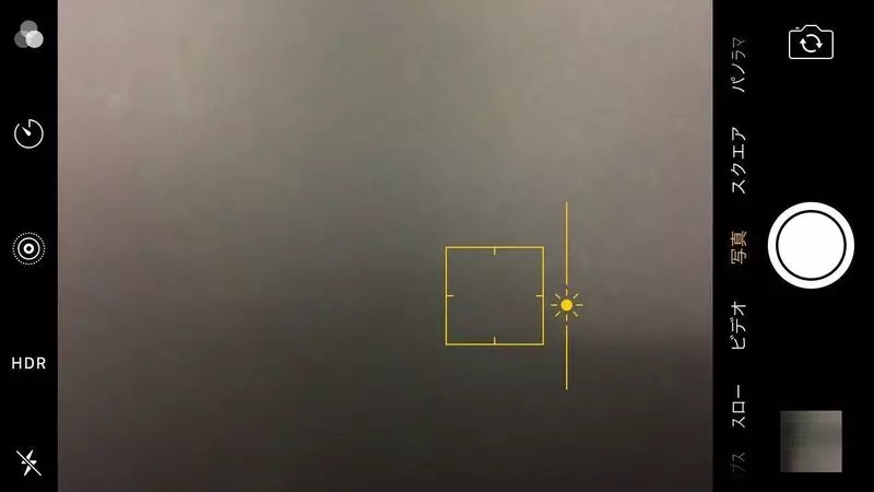 そんなときにおすすめなのが、この露出補正機能!写真を撮るときに画面を長押しすると、写真のような四角と太陽のようなマークが表示されるはずです!