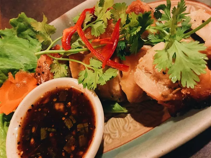 フォー以外に筆者がはまったのは、スパイシーな葉っぱに包まれた肉団子。見た目では何だかわかりませんが、肉汁とスパイスの香りがあいまって、一口食べると口の中にぶわあっと旨味が広がります。