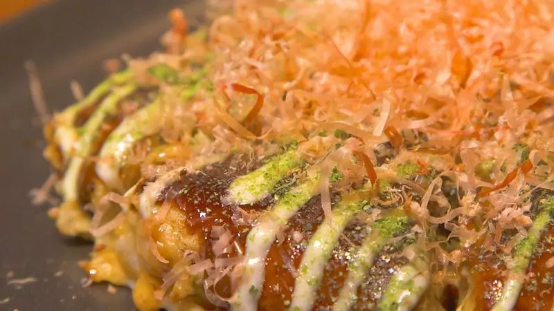 豚肉・イカ・タコ・牛肉・小エビを使ったこちらのお好み焼き、外はカリッと中はフワッとしていて食べ応え抜群です♪