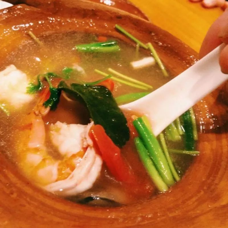 定番メニュー「トムヤムクン」は、他店では見たことがないくらい、タイハーブや漢方、変わった野菜が入っており、とても深く複雑な味。マストオーダーの1品です♡