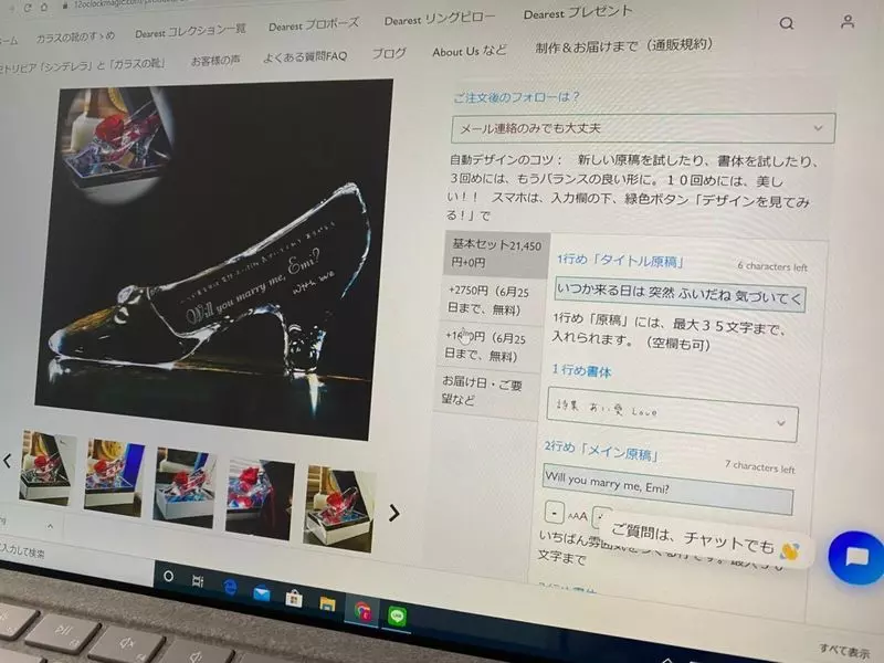 彼女にプロポーズする。そう決意し、特別なプロポーズにするべくプレゼントを探し回っていた時のこと。「これだ!」と見つけたのは、ガラスの靴"Dearest(ディアレスト)"。文字が刻印できる、まさに"世界に一つだけ"のプレゼント。ガラスの靴"Dearest"を実際に注文した僕の体験記を、ここに記します。