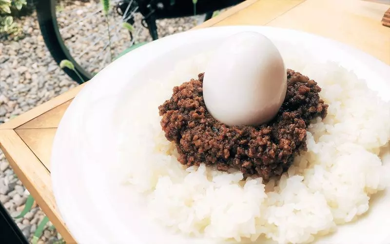 「HAGI CAFE」の人気メニューは「サバサンド」と写真の「半熟卵のキーマカレー」。